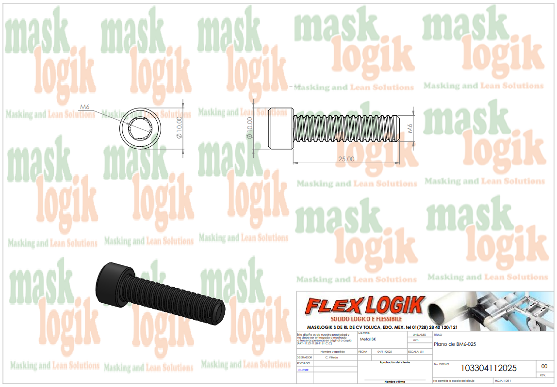 Tornillo cabeza allen cilíndrico para cuerda M6 X 25 mm color negro