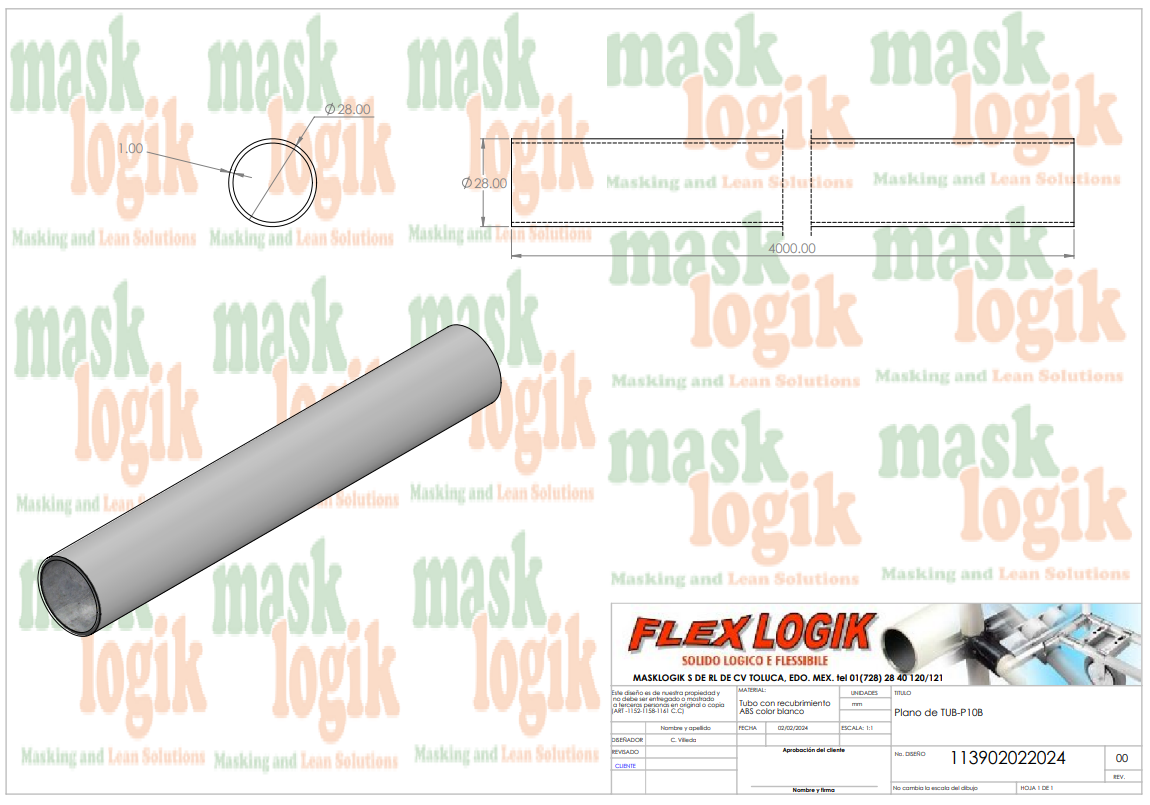 Tubo lean de acero al carbón cubierto con ABS color blanco dimensión exterior 28mm x 4mts, espesor 1.0mm